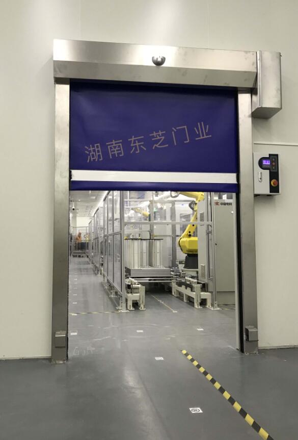 由我公司承接的中国电科车间精密仪器军工厂:快速门要求与机器人、出货、前中后段高度配合误差在0.5秒内,另外对密封效果要达到百级要求,通过我公司的测试与定制一期工程62樘门顺利验收。